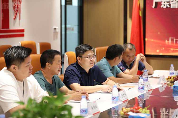 秘書長李寧介紹了來訪的企業代表——江西泰濤建筑工程有限公司總經理楊志誠,廣東祥富建筑工程有限公司董事長張清明、財務總監張雪梅,廣州寧凡建筑工程有限公司總經理黃崇賢,互筑科技(廣州)有限公司總經理黃曉斌。
